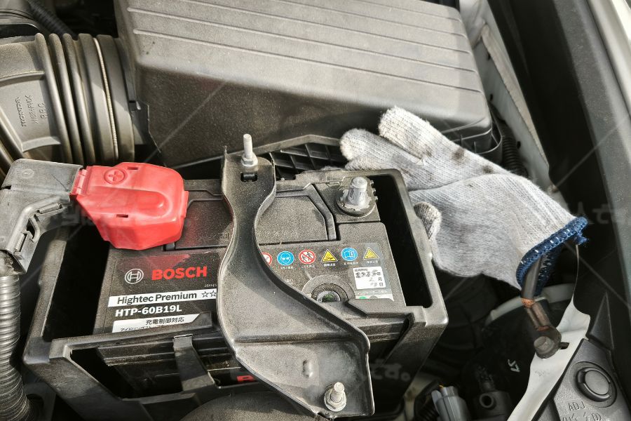 バッテリーのマイナス端子を外したのであれば戻して取り付ける。