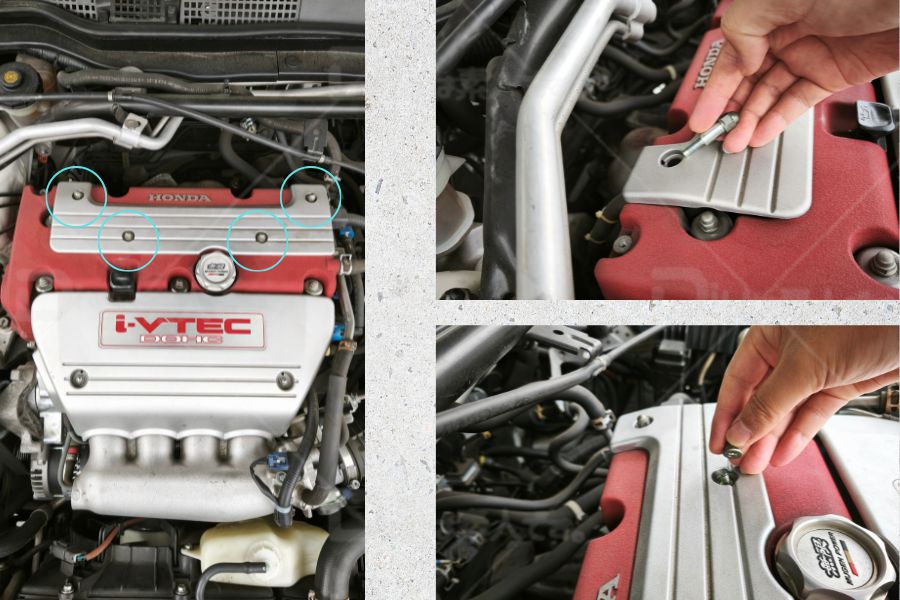イグニッションコイル付近には溜まったホコリや小さな石粒があり、これがプラグホールに中に落ちようものなら燃焼室に入り込み→シリンダー内部をキズつけ、エンジンに大ダメージ。