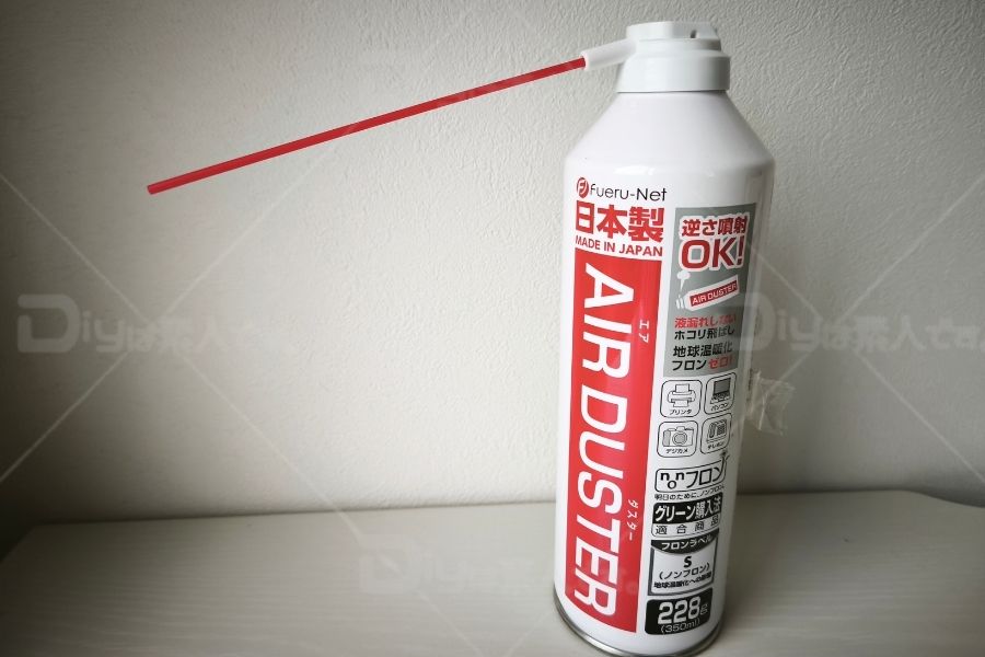 エアツールを持っていれば、エアブローガンなんかでブシャーと風を出せるが、持っていない筆者は代用品としてこのエアブローできるスプレー缶で代用した。これで全然問題ない。